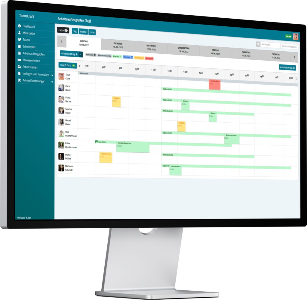 TeamCraft bietet dir eine einfache und schnelle Möglichkeit, deine Personalplanung auf ein neues Level zu heben.
